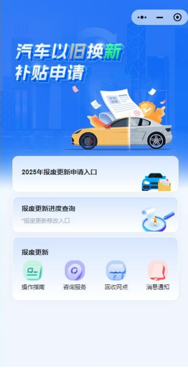 2025年汽车以旧换新补贴申请小程序端操作指南如下: