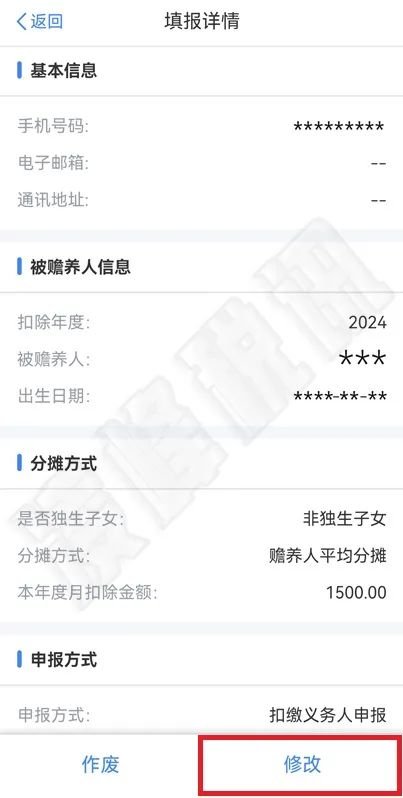 如果该专项附加扣除需在2025年度继续扣除,可以点击2024年度该专项附加扣除的填报记录进入“填报详情”页面;
