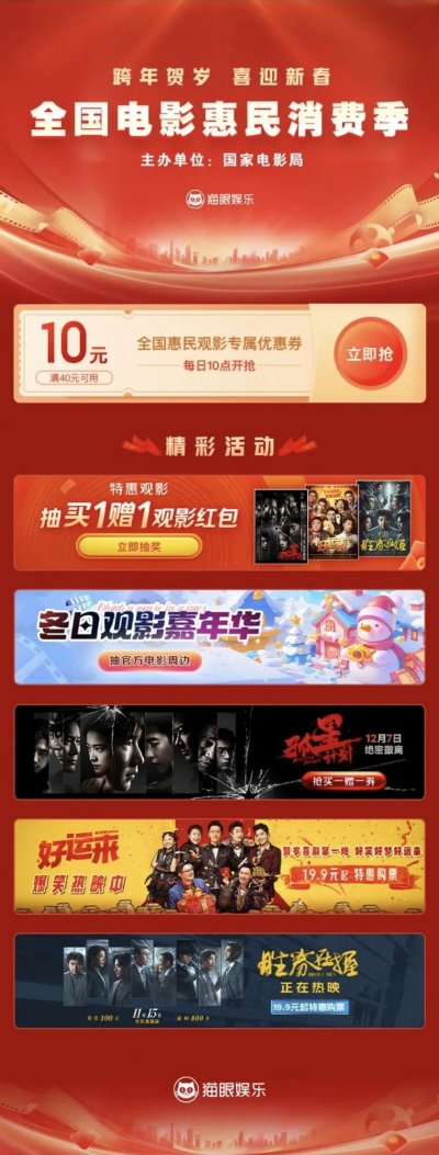 (1)微信公众号:关注“猫眼电影”公众号,点击菜单栏中的“我的”-“优惠券”查看活动。