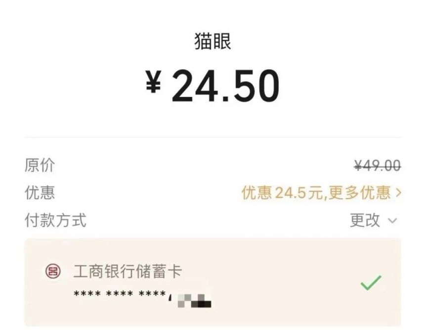 消费者可通过猫眼微信小程序或App,使用工行卡支付,享优惠看爆款影片、随机立减。