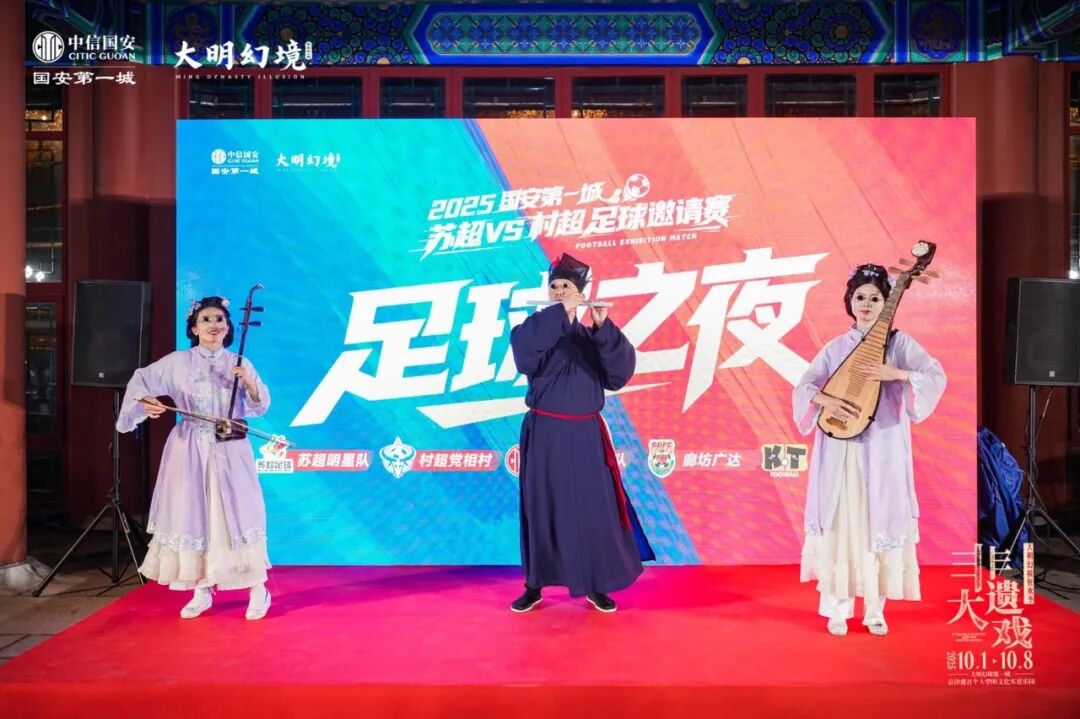 国家级非遗隆尧招子鼓的鼓点与足球比赛的哨声共振,贵州“村超”的草根热情与江苏“苏超”的战术博弈交织……在首届“苏超vs村超足球赛”上,中信国安联队、江苏苏超明星队、贵州村超党相村队、女足联队及廊坊广达队齐聚一堂,以球会友、以文聚力,共同书写“旅超”品牌的首章华彩。